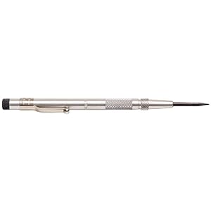 Use this automatic center punch from General Tools to precisely punch material for drilling and layout work. This spring-operated tool drives a hard point in a single one-handed operation that eliminates striking a punch with a hammer. This pocket punch is designed for punching, marking, scribing and starting nail or screw holes. It has a lightweight aluminum body with replaceable alloy steel point for long wear. It adjusts for light or heavy markings, and has a pencil-slim design with a pocket clip.
